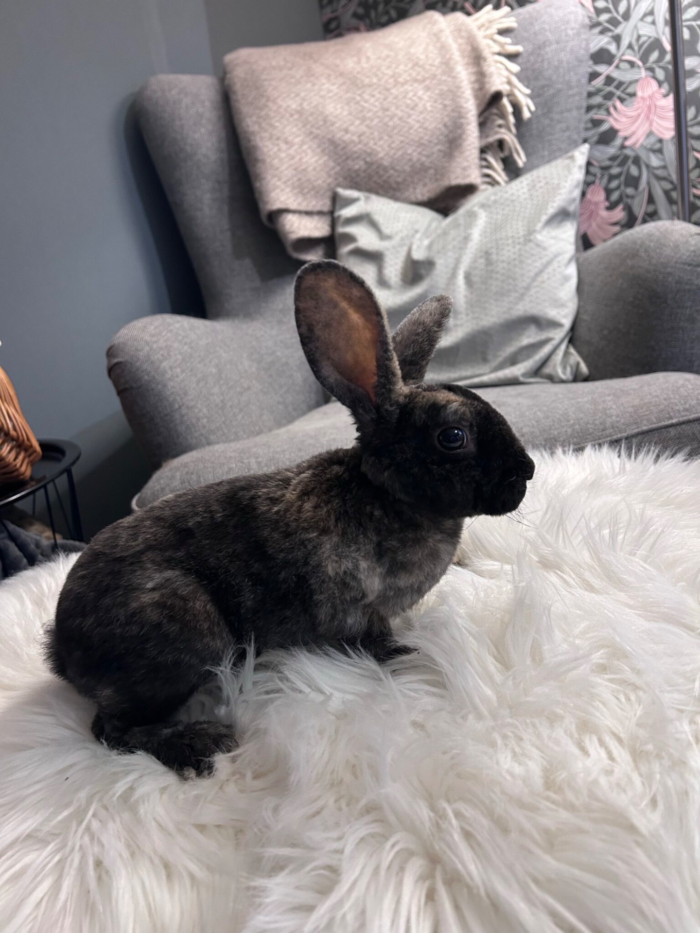 Han är troligen född i slutet av juli 2025 och är en försiktig men mysig kille som gärna bjuder på massor med pussar! Pysen är otroligt snäll och lätthanterlig och är en perfekt familjekanin och passar även nybörjare med kaniner! Han är av rasen Rex/Liten Rex , eftersom vi inte vet något om honom så vet vi inte om det finns någon mer ras i honom.